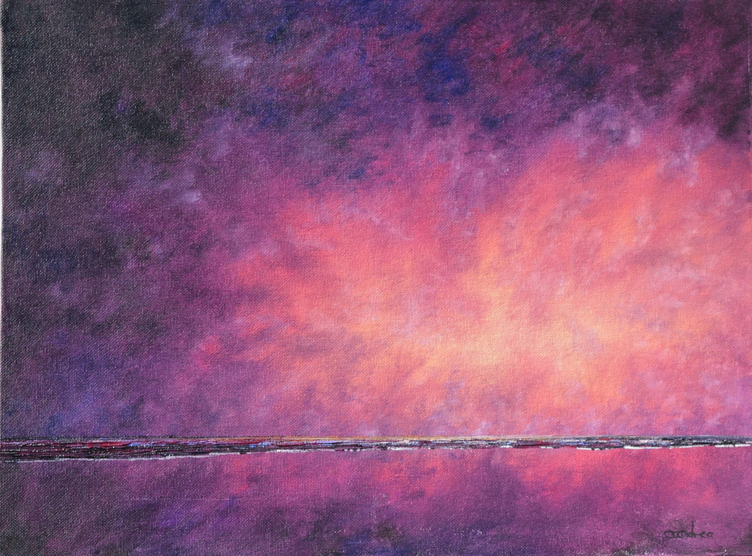 Challenging the viewer to contemplate the vivid, unearthly colours and hues thrust down from a fiery morning sky. Purposely categorised as “abstract” to ask whether it means something else.