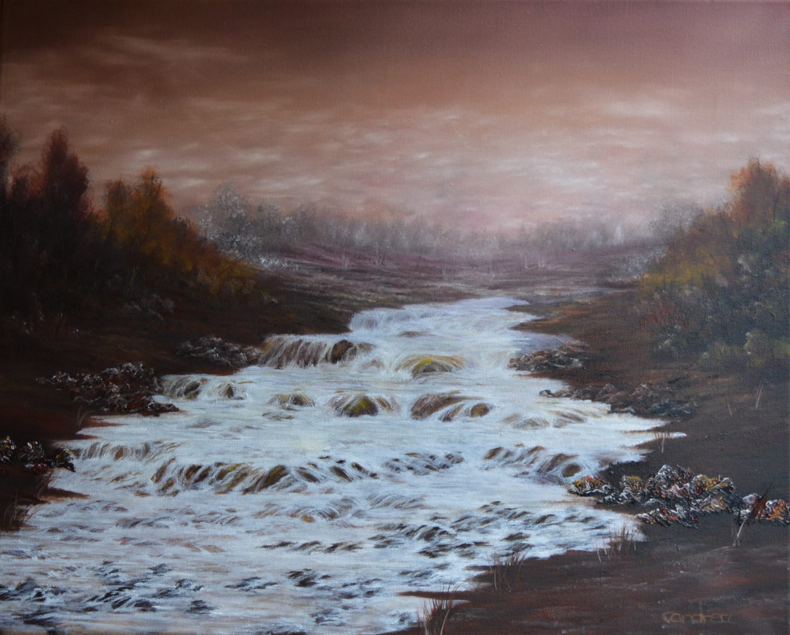 A painting inspired the wonderful woodlands and streams found in Dartmore but with a slightly ethereal quality. The tempered sky casts its subdued tones on the woodland beneath.